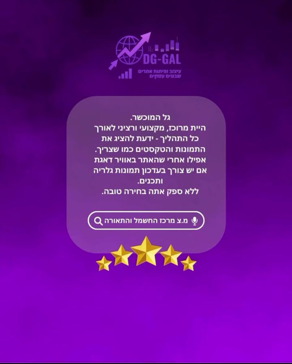 ✅ ברשתות אתה עוד אחד מני רבים. באתר האינטרנט הפרטי שלך – אתה בעל הבית, שולט במסרים ומבודל מהמתחרים.